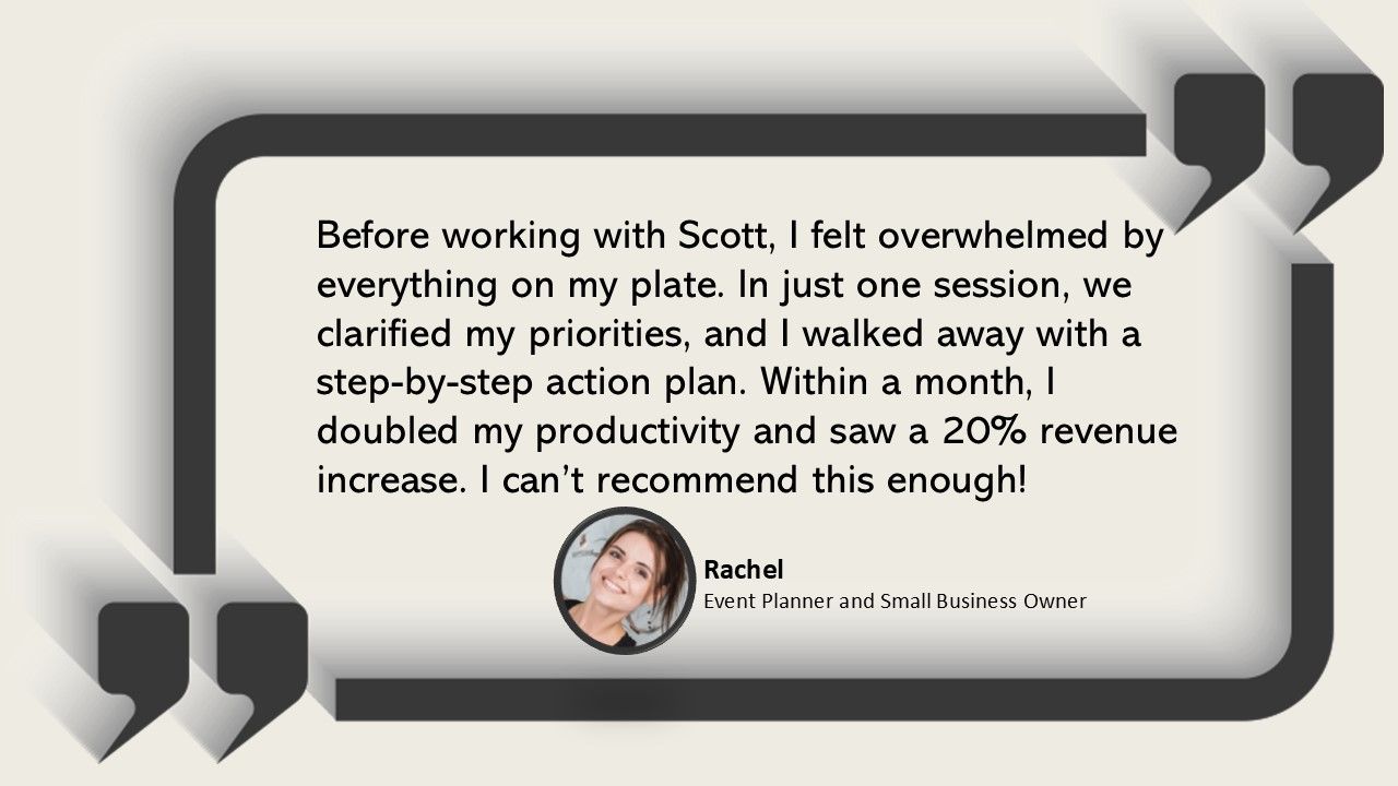 "Scott is an incredibly talented, natural coach. His value-centered guidance challenged me to think beyond just the here and now, but to focus more on finding my purpose and to capitalize on my strengths and passions. He is not only just a great coach but a caring mentor."
