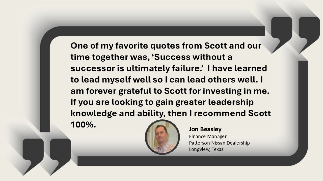 Scott is a talented communicator who speaks in front of large groups weekly on Leadership and Leading Yourself Well. He is known for his ability to keep an audience engaged and offer practical and life changing messages. He’s equally adept at speaking for community and corporate events, with a passion to spur others on, in their pursuit to reach their goals in life. Scott and his wife reside in the piney woods of East Texas and have been married for over 30 years with 3 beautiful daughters and a grand-daughter.